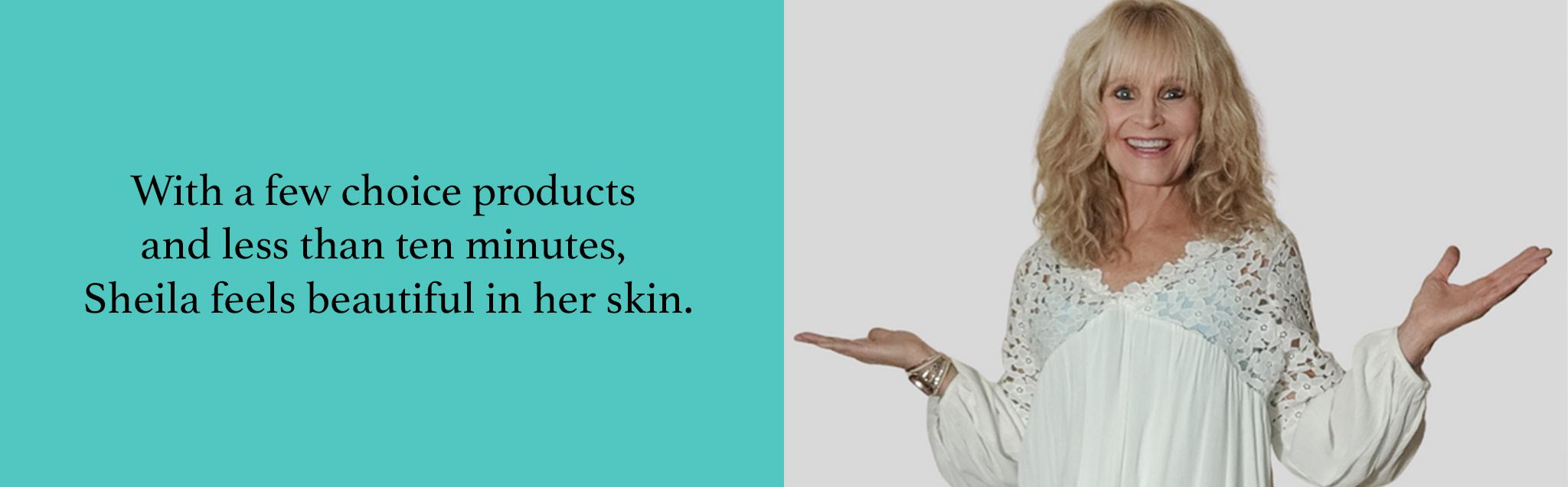 With a few choice products and less than ten minutes, Sheila feels beautiful in her skin. She fell in love.