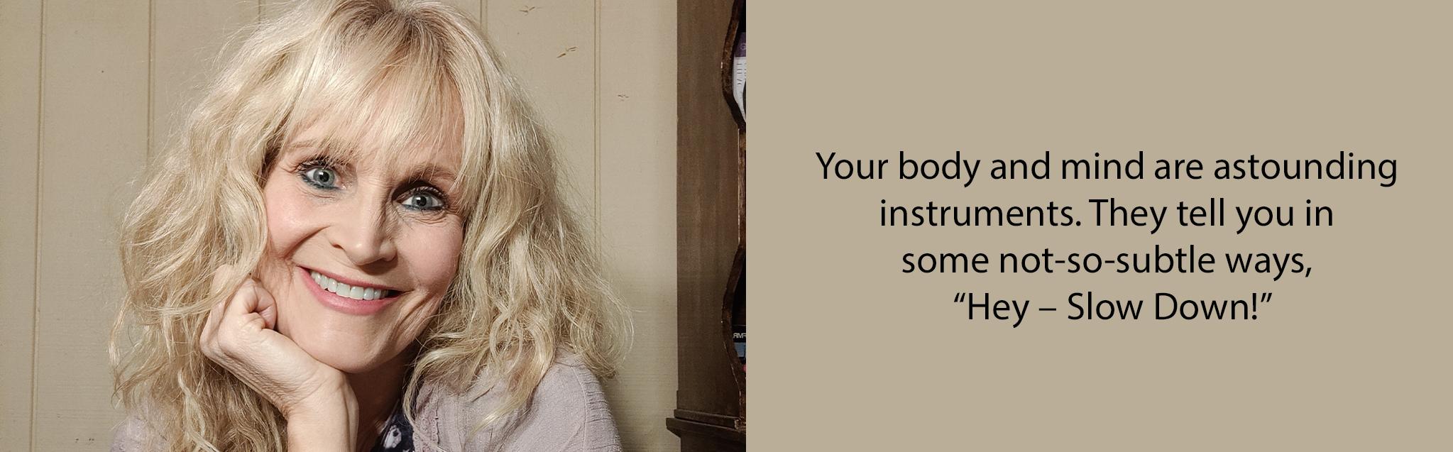 Your body and mind are astounding instruments. They tell you in some not-so-subtle ways, “Hey – Slow Down! Take some time for yourself. Just you! You need it.”
