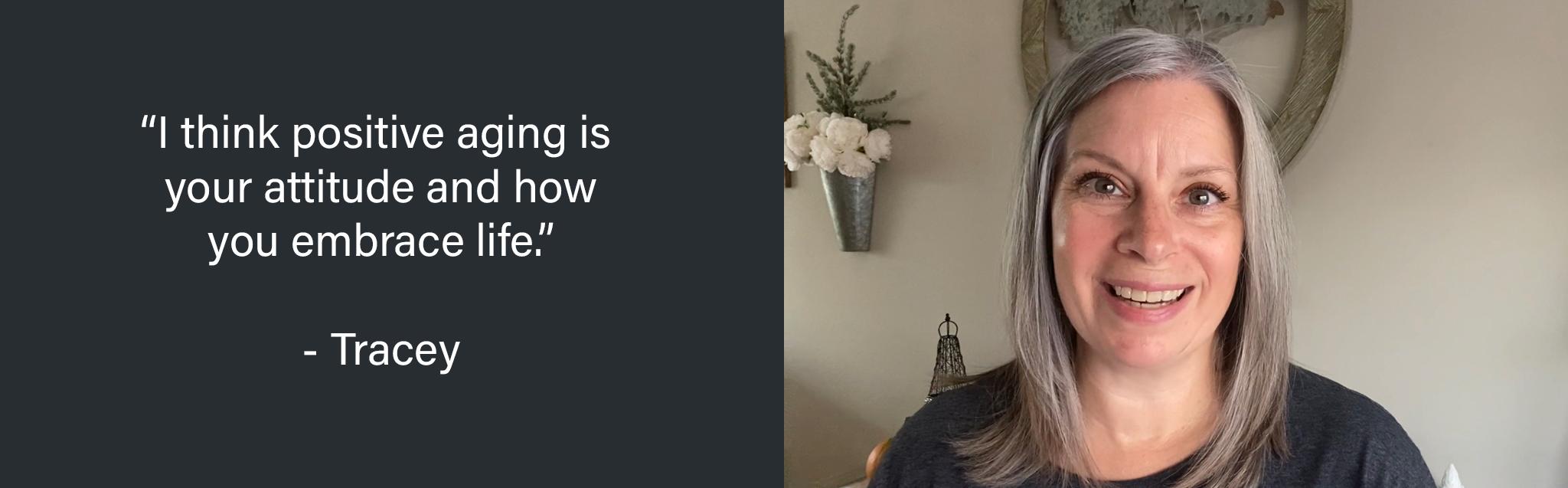She knows that how you live your life keeps you young, not your hair color. Check out the video below to see how Tracey has found empowerment in Positive Aging.