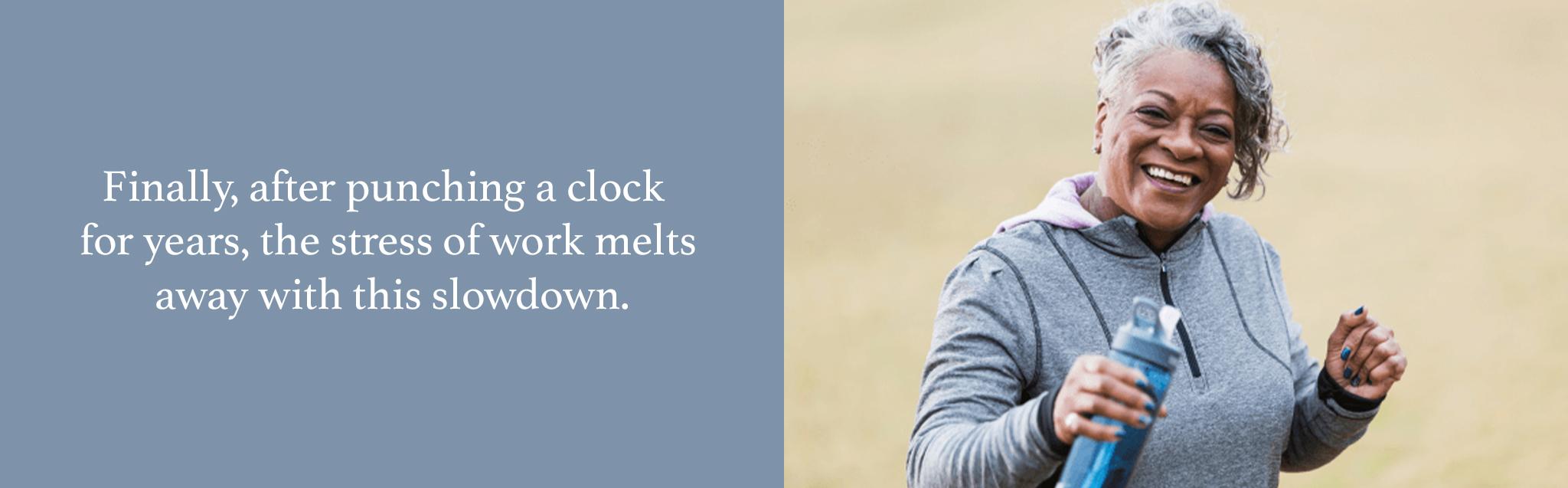 The first few weeks come, and we sink into a much-deserved rest. Finally, after punching a clock for years, the stress of work melts away with this slowdown.