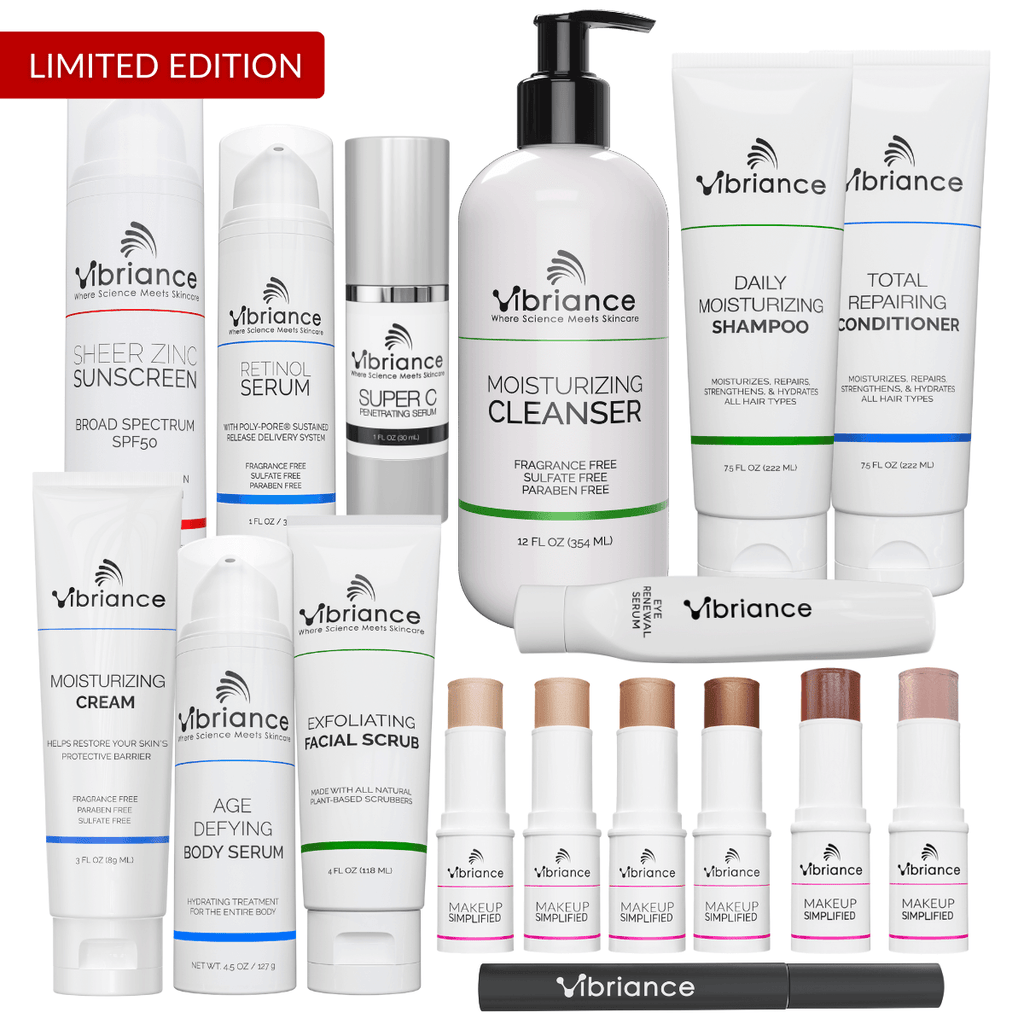 No more cabinet clutter or half-used products. This complete collection gives you a professional-level routine for face, body, hair, and makeup… all scientifically formulated to work together.