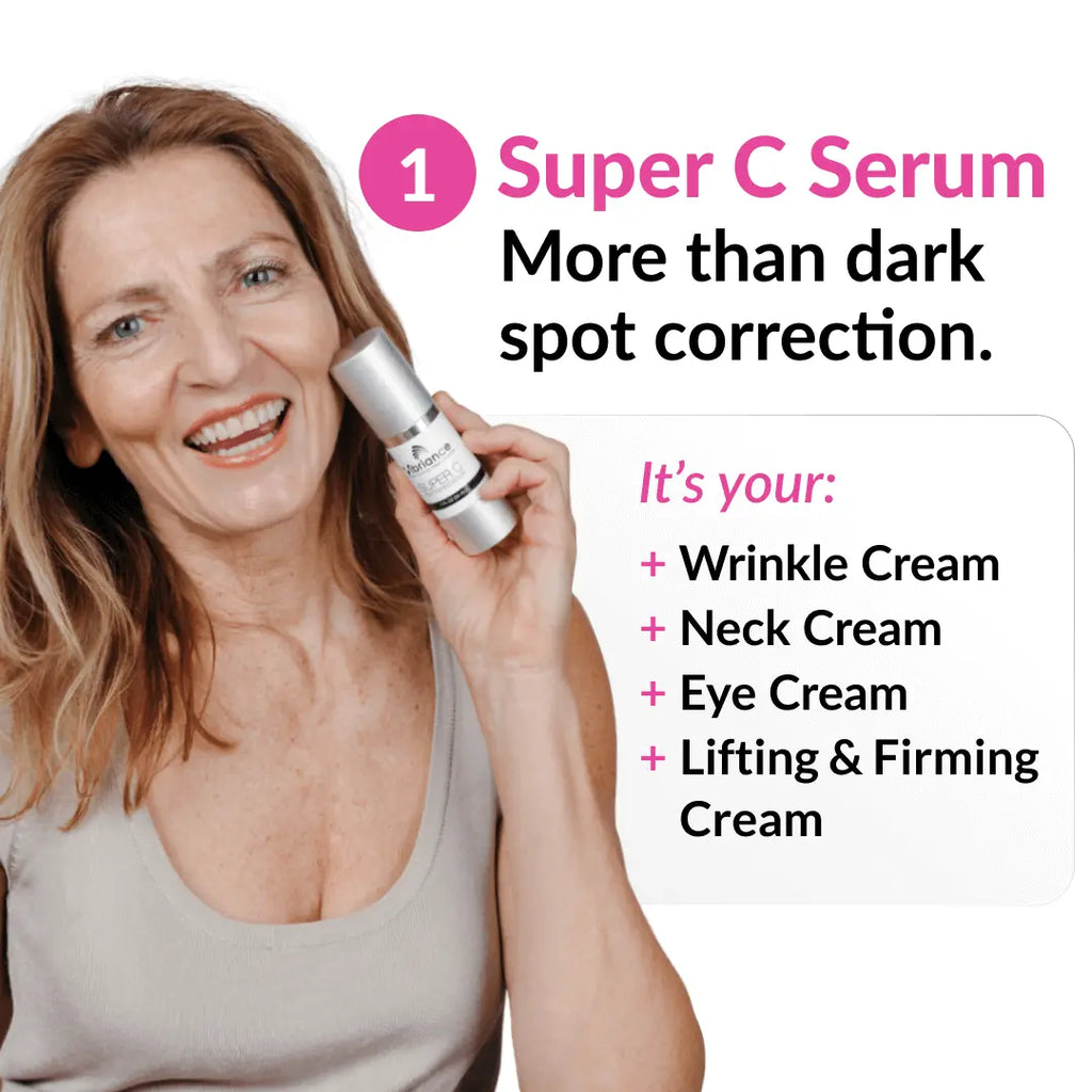 Get the recommended duo for fading dark spots — Super C Serum and Retinol Serum — plus the essential Moisturizing Cream that amplifies your results. It’s everything you need to fight age spots, sun damage, and uneven skin tone in a complete brightening system… bundled together at 20% SAVINGS.